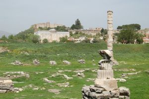 auf dem rueckweg werfen wir einen blick auf die ueberbleibsel eines der 7 weltwunder der antike: vom artemistempel ist nur gerade 1 der 127 saeulen uebriggeblieben.
