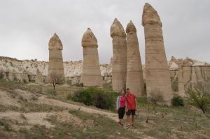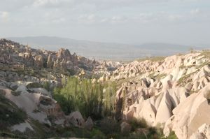 es ist eine richtige mondlandschaft…..die hethiter besiedelten kappadokien vor ueber 1800 jahren v. chr., zwischen dem 4.-11. jahrhundert blühte hier das christentum. die christen meisselten kirchen und hoehlenhaeuser in die schroffen felshaenge und gruben unterirdische staedte.
