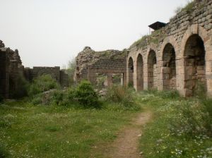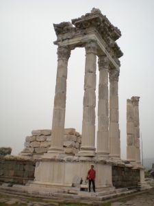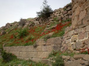 diese kleinere stadt (60'000 einwohner) liegt zwischen den huegeln, einige kilometer von der kueste entfernt. die antike stadt pergamon thront auf einem der huegel. wir erkunden sie von unten nach oben. ein sehr schoener fussweg fuehrt zwischen bluehendem klatschmohn und allerlei fruehlingsblumen durch die ruinen der alten stadt.