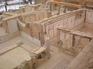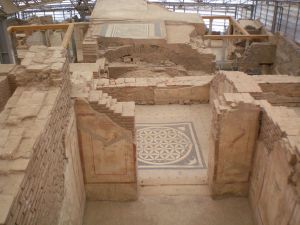 ein abstecher in die hanghaeuser (extra eintritt) offenbart einen interessanten einblick, wie die wohlhabenden epheser gewohnt haben. es gibt mehrere wohneinheiten, die, die der name sagt, an einem hang liegen und von baderaeumen mit bodenheizung (!) bis zu basiliken (fuer den empfang von gaesten) alles beeinhalten. die wohneinheiten sind alles sog. perystilbauten: die raeume sind um einen innenhof mit saeulen angeordnet. sehr schoene mosaiken und wandmalereien wurden freigelegt. so kann sich frau das taegliche leben sehr gut vorstellen!