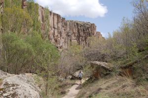göreme ist eine kleine stadt mit zweitausend einwohnerInnen und liegt zwischen hochaufragenden feenkaminen und durchloecherten tufffelsen und ist umringt von taelern mit den den poetischen namen wie rosen-, tauben-, honig- oder liebestal.