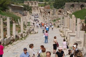 hauptattraktion von selcuk sind die ruinen von efes (ephesos). die teilweise sehr gut erhaltenen gebaeude liegen entlang der kurethen- und marmorstrasse.