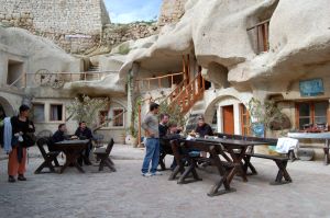 die heutigen höhlenbewohnerInnen sind travellers wie wir, die sich in höhlenhotels einmieten, die surreale landschaft, die vielen antiken kirchen und die tollen möglichkeiten fuer outdoor-aktivitaeten geniessen.